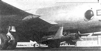 Этот самолет некоторое время стоял на вооружении, правда, ни разу не принимал участия в боевых действиях. На момент переделки в носитель для «Гоблина» он налетал всего 180 часов. Главной переделкой было расширение заднего бомбоотсека и установка складной трапеции фирмы «Мак- Доннелл». Эта конструкция, кроме петли подвески, имела подъемный хомут, в опущенном состоянии охватывавший носовую часть «Гоблина» и не допускавший его раскачивания. В выпущенном положении трапеция уходила вниз на 3,2 м. В заднем бомбоотсеке оборудовали герметизированный пост управления трапецией и рядом с ним «зал ожидания» – место, где пилот истребителя ждал сигнала занять свое место в кабине. Во время отцепкиподцепки оператор держал с пилотом «Гоблина» связь по маломощной УКВ-рации.