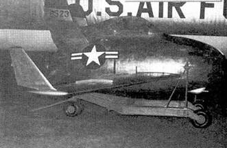 Наученные горьким опытом первых поражений в тихоокеанской войне, американские военные пришли к выводу, что в определенных условиях их последним бастионом может оказаться Американский континент. Передовые аэродромы были захвачены противником, и американская авиация не могла наносить удары по его территории. В этом случае проблему возможно было решить лишь путем строительства стратегического бомбардировщика с большим радиусом действия. Так родилось техническое задание на самолет, ставший потом чудовищным шестимоторным В-36. Когда эта машина с радиусом действия около 9000 км была уже близка к завершению, выяснилось, что она не совсем вписывается в принятую концепцию применения бомбардировочной авиации: отсутствовал истребитель сопровождения, способный в течение всего полета следовать за своим подопечным. Технически создать такой истребитель было весьма непросто, он бы получился заведомо перетяжеленным и неспособным отразить атаку перехватчика. Не менее важным было то обстоя тельство, что, пролетев вместе с бомбардировщиком шесть-восемь часов, летчик уставал настолько, что становился легкой добычей для вражеских перехватчиков. Представители ВВС пришли к выводу, что проблему сопровождения В-36 можно решить лишь нетрадиционным методом. В декабре 1942 года ВВС США объявили конкурс под названием «Проект МХ-472» – эскортирование тяжелого сверхдальнего бомбардировщика. За два года комиссия ВВС рассмотрела ряд проектов, в том числе такие экзотические, как дистанционно управляемый таранный перехватчик с ПВРД. К осени 1944 года члены комиссии пришли к выводу, что оптимальным решением вопроса при существовавшем на то время уровне техники и технологии стало бы создание бортового «паразитного» истребителя, носимого в бомбоотсеке, запускаемого и принимаемого на борт с помощью специальной трапеции.