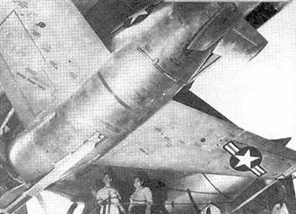 Конструкция фюзеляжа нового самолета – цельнометаллический полумонокок из алюминиевых сплавов длиной 4,32, шириной 1,27 и высотой 2,0 м. Все оборудование, вооружение и топливные баки устанавливались внутри его, так как крыло было очень тонкое, имело сложную конструкцию и узел складывания у самого корня. Крыло имело стреловидность 37° по передней кромке и отрицательное поперечное V 3°. Турбореактивный двигатель «Вестингауз» J-34WE-22 с максимальной тягой 1361 кг был установлен в носовой части фюзеляжа для того, чтобы сдвинуть вперед центр тяжести самолета, благодаря чему увеличивалось плечо хвостового оперения. От двигателя к срезу сопла шла выхлопная труба длиной 1,32 м. Двигатель и трубу покрывал слой фибергласовой ваты, укутанный алюминиевой фольгой для уменьшения теплоотдачи. Кроме того, снаружи двигатель обдувался воздухом, отбираемым из воздухозаборника.