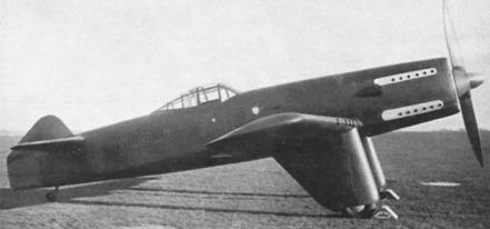 Но неугомонный Мартин в перерывах между основной работой продолжал чертить истребители. Его следующий проект, начатый в 1938 г., назывался МВ.З; к предыдущему он имел весьма незначительное отношение. Это тоже был свободнонесущий моноплан с нижним расположением крыла. В фюзеляже применялся запатентованный каркас из стальных труб. Но на этом сходство и заканчивалось. Поверх труб была смонтирована современная несущая обшивка, приклепанная впотай. Крыло вообще отличалось совершенно иной схемой. Основой его силового набора стал кессон, образованный жестким носком и лонжероном со стальными полками и перфорированными дюралевыми стенками и верхними и нижними панелями. Вся обшивка крыла была металлической, несущей.