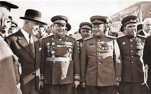 Прибытие маршала Толбухина в Бухарест, как председателя Союзной Контрольной Комиссии. Румыния, Бухарест, 1945 г.