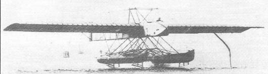 Это был расчалочный моноплан на двух больших поплавках. Для облегчения взлёта под поплавками были установлены подводные крылья (они хорошо видны на снимке).