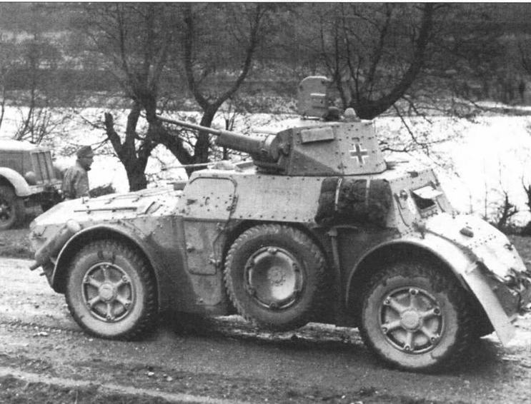 Итальянский бронеавтомобиль Autoblinda АВ 41, эксплуатирующийся в одной из частей Вермахта. Восточный фронт, 1944 год