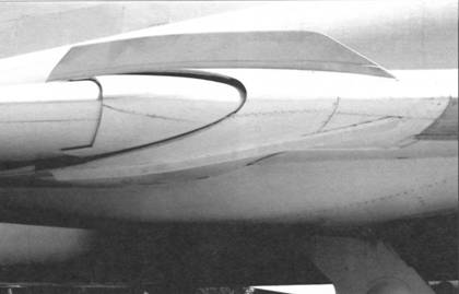 Места стыковки поворотных консолей крыла с центропланом, а также аэродинамические перегородки (гребни) самолетов Ту-22М0 (слева) Ту-22М2 (справа)