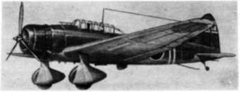 Так, палубный бомбардировщик-торпедоносец (рис. 9) Накадзима B 5 N 2 («Кейт»), принятый на вооружение еще в 1 937 г., был оснащен двигателем мощностью 1115 л. с. с винтом изменяемого шага и убирающимся в полете шасси, Он мог нести торпеду массой 800 кг на дальность 1100 км. Вместо торпеды самолет мог быть вооружен тремя бомбами массой по 250 кг. Его максимальная скорость полета составляла порядка 400 км/ч. Блестяще зарекомендовав себя в налете на Пирл-Харбор, «Кейты» в течение последующих 10 месяцев торпедными атаками сумели потопить четыре американских авианосца. Широко применялись они и для нанесения бомбовых ударов по наземным целям, в частности в ходе сражения у атолла Мидуэй.