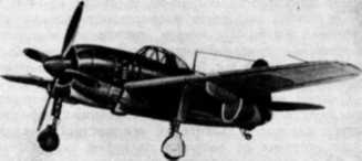 В июле 194 3 г. совершил первый полет истребитель Каваниси N1К1- J «Сидел» («Джордж»). Это был наиболее мощный японский одномоторный истребитель (рис, 1 9), Его полетная масса составляла 4000 – 4860 кг. Вооружение первоначально включало четыре 20-миллиметровые пушки и два 7,7-миллиметровых пулемета. В конце войны оно, как у «Рейдена», состояло из четырех пушек (модификация N 1 K 2- J ). Одной из особенностей этого самолета было то, что он мог с успехом действовать и по наземным целям. Его максимальная бомбовая нагрузка составляла 500 кг. Правда, скорость полета была недостаточно высокая – 595 км/ч, несмотря на наличие двигателя мощностью 1990 л. с.