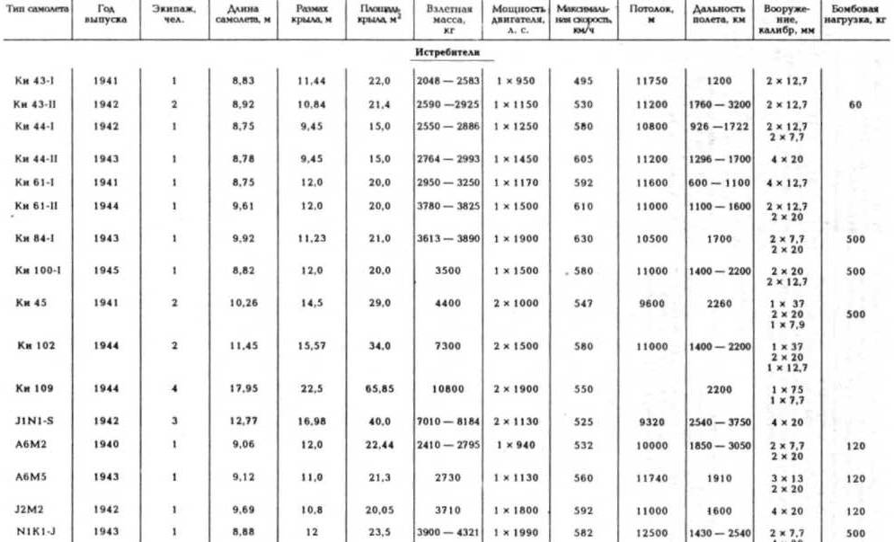 истребителей Ки 43 – 5919, Ки 44 – 1225, Ки 45- 1370, Ки 61 – 3078, Ки 84 – 3514, А6М- 10 449, J 2 M – 476, J 1 N – 479, N 1 K – 1435;