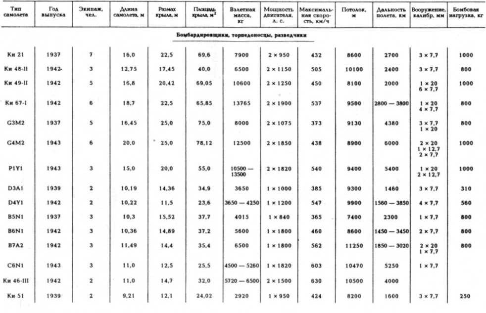 бомбардировщиков Ки 21 – 1713, Ки 4 8 – 197 7, Ки 4 9 -819, Ки 51 -2385, Ки 67 – 698, G 3 M – 1048, G 4 M – 244 6, P 1 Y 1 – 1098;