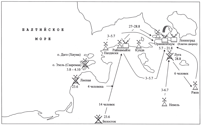 Рис. 12. Изменение дислокации радиоотряда Краснознаменного Балтийского флота. 1941