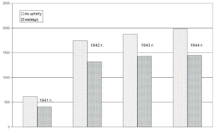 Рис. 14. Динамика роста количества личного состава береговых частей радиоразведки советского ВМФ в Великой Отечественной войне