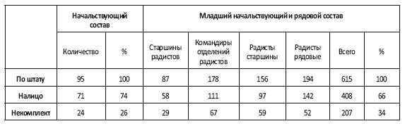Укомплектованность личным составом береговых радиоотрядов советского ВМФ на начало 1941 г.