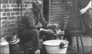 Берман (сидит) и Альфред Руббель (стоит) стирают белье у частной квартиры в Керцлине.