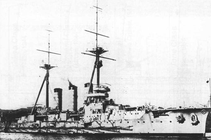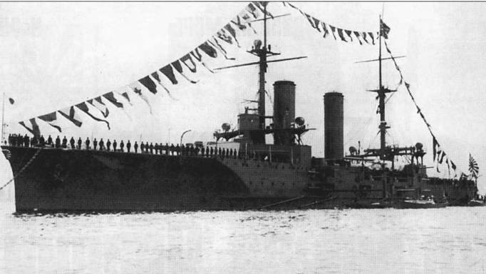 Усовершенствованный вариант крейсера типа «Цукуба» — крейсер «Карума» с треногими мачтами, которые обычно ассоциируются с линкорами дредноутского типа.