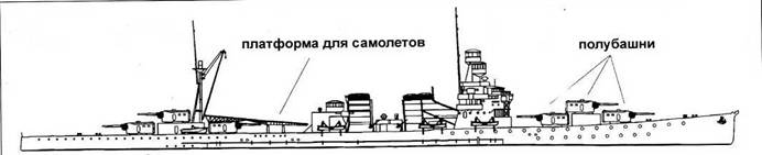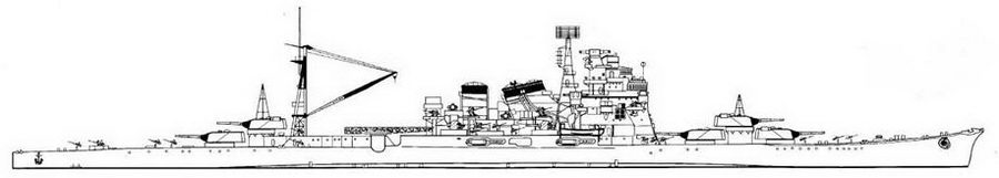Развитие японских тяжелых крейсеров, профили представлены в одном масштабе.