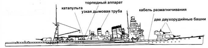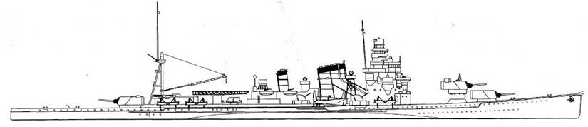 В 1931 г. крейсер «Фурутака» был по-прежнему вооружен одноорудийными полубашнями, но передняя дымовая труба уже была надстроена.