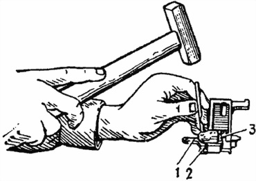 Рис. 19. Выталкивание оси флажка шептала.