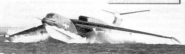 В отличие от своих прямокрылых предков, этот самолет, рассчитанный на скорость более 900 км/ч, имел многолонжеронное высокорасположенное стреловидное крыло – кессон с тонким профилем. В корне крыла плотными «пакетами» попарно располагались четыре турбореактивных форсированных двигателя. Их воздухозаборники были приподняты на достаточную высоту, чтобы не всасывать брызги при рулении, взлете и посадке. Конструкция двигательных отсеков была такова, что силовую установку можно было заменить прямо в открытом море, с плавбазы, без вытягивания самолета на сушу. Управление по крену осуществлялось, как у скоростных истребителей, – с помощью интерцепторов.