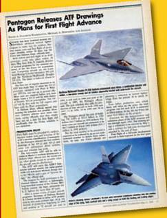 Изображения и краткие тактико-технические характеристики некоторых из предложенных на стадии поисковых работ аванпроектов были опубликованы в печати еще на начальном этапе программы, официально начавшейся в 1981 г. Внешний вид прототипов ATF — самолетов YF-22A и YF-23A — был обнародован пресс-службой ВВС США за несколько месяцев (!) до церемонии выкатки, в мае 1990 г (см. отсканированную страницу из журнала «Авиэйшн Уж за 21 мая 1990 г.).