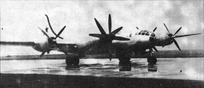 Внизу: Летающая лаборатория Ту-4ЛЛ. Самолет использовался для летных испытаний газотурбинных двигателей, в том числе турбовинтового НК-12, который предназначался для стратегического бомбардировщика Ту-95. От всех других подобных лабораторий, построенных когда-либо раньше или даже много позже, эта отличалась небывалой разницей в мощности штатных силовых установок и испытываемого двигателя: НК-12 был впятеро мощнее, чем каждый из поршневых АШ-73ТК