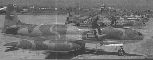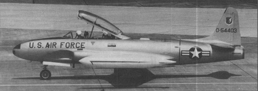 К 1947 г. ВВС США охватила просто эпидемия катастроф с Р-80. Кроме первого пилота "Шутинг Стара" Мило Берхэма погиб и лучший ас США во второй мировой войне Ричард Бонг. Эти катастрофы ставили вопрос о создании специального тренировочного самолета для обучения полетам на реактивной технике. Но в условиях послевоенного сокращения военных программ выбить деньги на создание нового самолета было делом очень сложным. В результате новые пилоты Р-80, имевшие за плечами только опыт полетов на учебном Норт- Америкэн Т-6 и поршневом истребителе Р-51 "Мустанг", в лучшем случае довольствовались знакомством со списанными Р-80, стоявшими даже не на. шасси, а на бетонных блоках!
