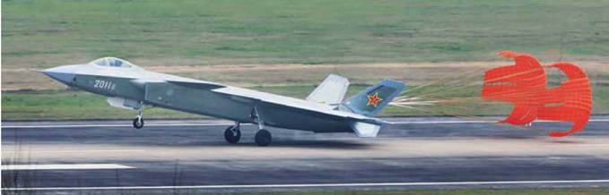 Посадка J-20 №2011 с использованием тормозного парашюта