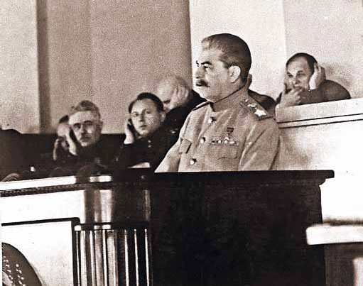 Сталин выступает на торжественном заседании, посвященном XXVI годовщине Великого Октября. Москва, 6 ноября 1943 г.