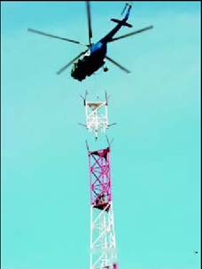 Вертолетный монтаж – один из самых сложных и самых зрелищных видов авиационных работ. Где еще можно увидеть, как гигантский летающий кран за считанные минуты собирает мачту сотовой связи или устанавливает многотонный купол храма? Выполняя строительно-монтажные работы (СМР), вертолет в прямом смысле поднимает технологию строительства на самый высокий уровень. В данном случае вертолет «выступает», с одной стороны, как высокомобильный летательный аппарат, с другой – как строитель. На экипаж вертолета ложится особая ответственность, специалисты хорошо знают, насколько эта работа опасна. Предугадать все, что может произойти на монтаже, производящемся с помощью вертолета, невозможно. В начале августа 2002 года, например, в Кронштадте во время установки креста на купол храма (работал вертолет Ми-8 «Балтийских авиалиний») оборвался трос, и семиметровый крест рухнул на землю. Только по счастливой случайности обошлось без человеческих жертв.