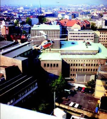 Ка-32 устанавливает контейнер. Берлин, 1992 г.