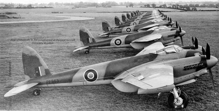 Линейка «Москито» В.XVI, построенных на авиазаводе компании «Персиваль Эркрафт» в Лутоне