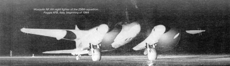 Ночной истребитель «Москито» NF.XIII из 256-й эскадрильи. Италия, авиабаза Фоджиа, начало 1944 г.а