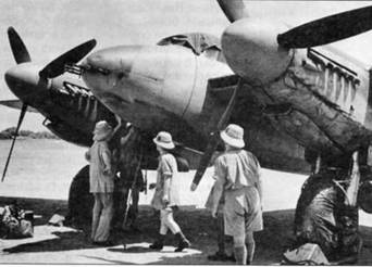 На Дальнем Востоке истребители- бомбардировщики «Москито» появились довольно поздно – сказался печальный опыт эксплуатации истребителей и разведчиков в 1943 г. в условиях тропического климата. Потребовались некоторые переделки конструкции, а также изменения технологии изготовления «Мосси». В частности, вместо казеинового клея теперь использовали формальдегидный, более устойчивый к влажности и воздействию тропических насекомых. В феврале 1944 г. «шестерками» вооружили 45-ю АЭ, а в июле – 82-ю. Обе эскадрильи британцы использовали для ударов по японским коммуникациям в Бирме. В дополнение к ним на FB.VI перевооружили еще три эскадрильи, но оперативной готовности они достигли лишь к моменту окончания боевых действий.