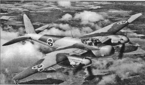 Понеся серьезные потери в ходе «Битвы за Англию», к концу лета 1940 г. люфтваффе перешли на ночные бомбардировки. На тот момент уже были разработаны и запущены в производство первые британские самолетные РЛС. Первым специально разработанным британским истребителем с таким радаром стал двухмоторный Beaufighter Mk.l фирмы «Бристоль». Он имел максимальную скорость 540 км/ч, был вооружен четырьмя 20-мм пушками и четырьмя 7,7-мм пулеметами. Эта цельномегаллическая машина так бы и осталась вне конкуренции, если бы на горизонте не появился «Москито», который обладал целым рядом преимуществ. Во-первых, почти на 70 км/ч большей максимальной скоростью. Во-вторых, при близкой мощности двигателей «Де Хэвилленд» был на тонну легче, что обеспечивало лучшую скороподъемность и маневренность. В-третьих, экипаж «Мосси» находился в общей кабине, что облегчало взаимодействие летчика и штурмана-оператора, тогда как на «Бристоле» они размещались в отдельных отсеках. Наконец-то, «Москито» был гораздо проще в пилотировании. Не удивительно, что к осени 1943 г., как только истребители «Москито» стали производиться в достаточном количестве, звезда «Бофайтера» закатилась.