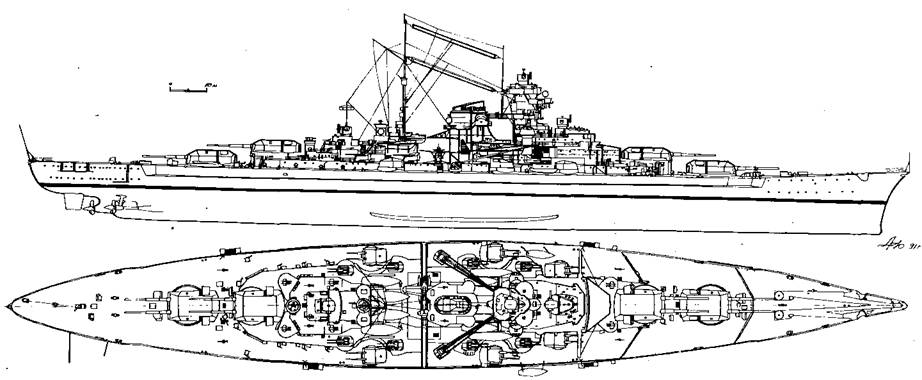 Таблица 2.1 Основные элементы линейных кораблей и линейных крейсеров Элементы/тип корабля Линейные корабли Линейные крейсера "Н" "Бисмарк" "О" "Шарнхорст” 1 2 3 4 5 1. Водоизмещение, т: — стандартное 56 200 42 900 32 300 31 800 — полное 68 000 52 600 38 200 38 900 2. Размеры, м: — длина по КВЛ (наибольшая) 266 (279) 242 (251) 246 (257) 226 (235) — ширина 30 36 35 30,5 — осадка (наибольшая) 9,6 (11,2) 9 (10,6) 7,6 (9) 8,2 (9,9) 3. Главные механизмы: — тип установки дизельмоторы котлотурбинная котлотурбинная и дизельмоторы на свои валы котлотурбинная — суммарная мощность, л. с. 165 000 138 000 60 000 и 110 000 160 000 — число ТЗА _ 3 1 3 — число дизельмоторов 12 _ 8 _ — число котлов _ 12 _ 12 — число винтов 3 3 3 3 — запас топлива, т 10 000 "Бисмарк” — 7900, "Тирпиц” " 8780 5100 6300 4. Скорость хода, узлов 29 30.8 33,5 31,5 5. Дальность плавания, миль: — скоростью хода 19 узлов 16 000 "Бисмарк” — 8100, "Тирпиц" ” 9000 14 000 10 000 6. Вооружение, число: — 406/52 АУ 4x2 _ _ _ — 380/52 АУ _ 4x2 3x2 _ — 280/54,5 АУ _ — — 3x3 — выстрелов ГК • 960 • до 1350 — 150/55 АУ 6x2 6x2 - 4x2 + 4х1 — 150-мм выстрелов • 1800 • 1800 — 105/65 ун.АУ 8x2 8x2 4x2 7x2 — 105-мм выстрелов • 6720 • 5600 — 37/80 зен.АУ 8x2 8x2 4x2 8x2 — 37-мм выстрелов • 32 000 • до 96 000 — 20/65 зен.АУ 24x1 12 на момент постройки, 64 на момент гибели "Тирпица" 20x1 10 на момент постройки, впоследствии до 38 — 20-мм выстрелов • до 90 000 до 76 000 — 533-мм торпедных труб 2x3 2 х 4 на “Тирпице" с 1942 г. — уже в ходе боевых действий установлено 2x3 — 533-мм торпед • 24 — 18 — катапульт 2 1 спаренная 1 спаренная 2, но в ходе боевых действий одна демонт. — гидросамолетов 6 6 4 4 7. Бронирование, мм: — верхняя палуба 50 50 30 50 — броневая палуба 100 100 80 80 — скосы 120 120 110 105 — главный бортовой пояс 150—330—90 60—320—80 180 20—350—30 — верхний бортовой пояс 60—150—30 145 80 — — траверзы • 220 • • — АУ ГК 385 360 210 360