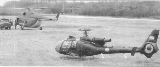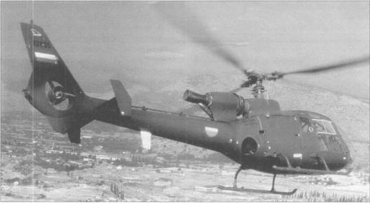 Первыми вертолетами, появившимися на вооружении ВВС Югославии в 1954 г., стали десять британских машин Уэстленд «Дрэгонфлай». Лицензионное производство вертолетов Уэстленд «Уирлуинд» было налажено фирмой Soko; «Уирлуинды» оставались на вооружении до 1974 г. В 1960 г. начались поставки вертолетов Ми-4 из Советского Союза. В 1970-е гг. на вооружение ВВС были приняты вертолеты Ми- 8 советского и Ми-2 польского производств. В 1972-1973 гг. во Франции была закуплена партия из 21 вертолета Аэроспатьяль SA.341 Н «Газель», затем вертолеты SA.341H строились по лицензии фирмой Soko на заводе в Мостаре (построено 132 вертолета). С 1982 г. завод в Мостаре переключился на выпуск вертолетов SA.342L (изготовлено сто машин). Вертолеты SA.342L строились в двух модификациях. Вертолет огневой поддержки «Газель-GAMA» (Gazelle-MALjutka) предназначался для борьбы с бронетехникой и был вооружен четырьмя ПТУР «Малютка». Выбор для вооружения противотанкового вертолета ПТУР «Малютка» объяснялся наличием таких комплексов на вооружении сухопутных войск ЮНА (Югославская народная армия) – вертолеты могли пополнять боекомплект у «армейцев». Вертолет SA.341L HERA (Helicopter-Radio) предназначался для ведения разведки и корректировки артиллерийского огня. Вертолетные эскадрильи имели на вооружении «Газели» всех трех модификаций, обычно: четыре «Партизана» (cTapbieSA.341 Н), четыре «Гамы» и четыре «Херы».