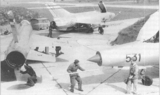 В конце 70 – начале 80-х годов на вооружение югославских ВВС поступили истребители МиГ-21 бис/бис-К (L- 17/L-17K), а также спарки МиГ-21 УМ (NL-16). Эти самолеты сменили МиГи устаревших модификаций во всех трех полках, хотя отдельные истребители МиГ-21 Ф-13 продолжали летать до 1991 г. В 1984 г. на вооружение 352- й истребительной авиационной эскадрильи поступили четыре самолета МиГ- 21 МФ, доработанных собственными силами в разведчики. На них установили американские аэрофотоаппараты К-112А, закупленные в США через третьи руки. В Югославских ВВС имелись разведчики МиГ-21 Р, но установленная на них фотоаппаратура годилась только для выполнения задач тактической разведки. С американскими высотными фотокамерами самолеты МиГ-21 могли вести стратегическую и оперативно-тактическую разведку с высот 8000-15000 м на скорости М=1,5. Доработанные самолеты получили обозначение L-15M. К моменту распада Югославии, ВВС располагали шестью эскадрильями истребителей МиГ-21 бис и одной МиГ-21М. В середине 90-х годов с вооружения югославских ВВС были сняты 16 перехватчиков МиГ-21 ПФМ, четыре истребителя МиГ-21МФ, четыре спарки МиГ-21 У, пять МиГ-21 УС и пять разведчиков МиГ-21P.
