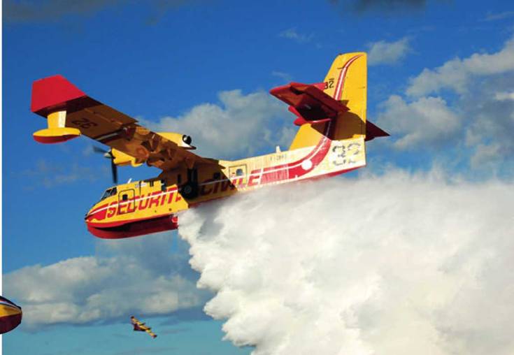 Противопожарная амфибия CL-415 Департамента гражданской обороны Франции за работой. Сегодня ведомство располагает 12 такими машинами