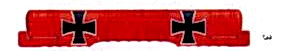 Самолет Лотара фон Рихтгофена был окрашен в его персональный желтый цвет. Красные капот, подкосы и диски колес — красные, отличительный признак самолетов 11-го стаффеля. Обратите внимание на закрашенный оливковой краской белый фон креста на борту фюзеляжа.