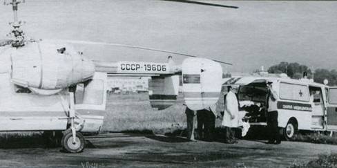 На Ка-26 из Чернобыльской зоны доставлен пострадавший. Жуляны, лето 1986 г.