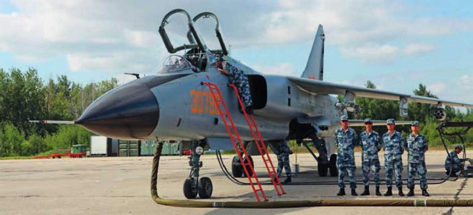 Технический экипаж истребителя-бомбардировщика JH-7 ВВС НОАК у своего самолета