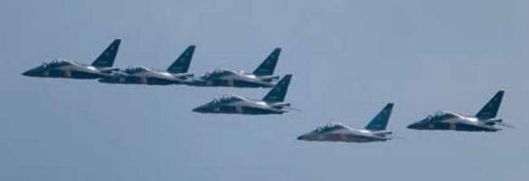 В полете - шестерка Як-130 пилотажной группы "Крылья Тавриды"