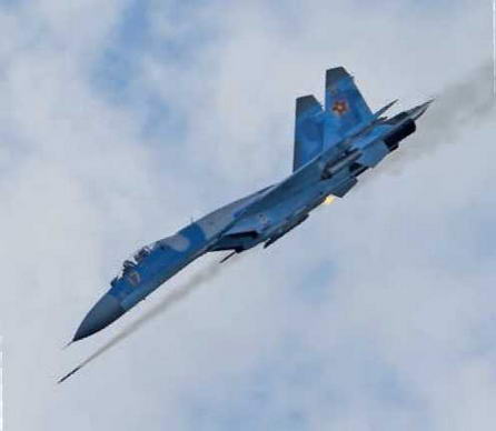 Казахстанский Су-27 атакует мишень неуправляемыми ракетами