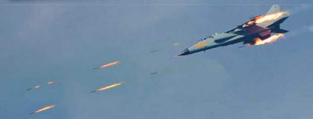 Ракетная атака наземной цели экипажем китайского истребителя-бомбардировщика JH-7