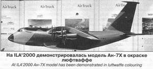 Сегодня во всей Европе, наверное, трудно найти человека, не слышавшего о российско-украинском суперсамолете Ан-70. Очень уж много обещает эта машина как в плане технико-экономических характеристик, так и в плане возможностей для развития взаимовыгодного сотрудничества между бывшими потенциальными противниками – странами Западной и Восточной Европы. Но судьба этого самолета изобилует трудными и без преувеличения драматическими поворотами, и на этом фоне бурным всплеском выделяются события, состоявшиеся накануне и во время авиасалона ILA'2000, проходившего в Берлине между 6 и 12 июня. В Украине и России многие телеканалы и газеты отреагировали на них, «спев за упокой» общеевропейскому варианту самолета Ан-7Х, а некоторые – и базовой машине.