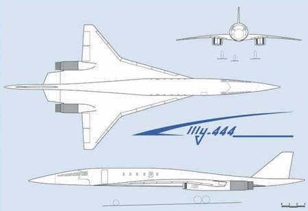 Во время авиасалона МАКС-2003 стало известно, что к тематике сверхзвуковых «бизнесджетов» решило обратиться и единственное в России авиационное ОКБ, имеющее практический опыт создания и эксплуатации СПС – фирма «Туполев». Соответствующий проект получил название Ту-444.