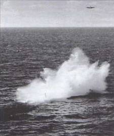 Первое применение неуправляемых ракет было отмечено 11 января 1944 г., когда экипаж TBF-1С из эскадрильи VC-58 добился двух попаданий во всплывшую U 758, а когда она погрузилась, сбросил глубинные бомбы Мк. 54 калибром 158 кг. Их мощность была существенно меньше, чем применяемых с кораблей, и они были эффективны лишь при близком разрыве. Если визуальный контакт терялся, шансов уничтожить субмарину серией из четырех глубинных бомб практически не оставалось.