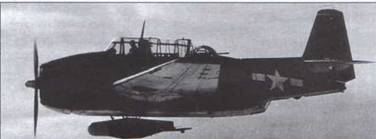 TBF-1C л-та Л.Л. Мак-Форда из>/С-58. Его экипаж 11 января 1944 г. первым на флоте США выполнил ракетную атаку против подводной лодки
