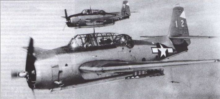Занятые штурмовкой и охотой за мелкими судами палубные торпедоносцы в этот период действовали против вражеского флота мало и без особых успехов. Одной из наиболее неудачных операций можно считать налет на силы противника в районе Рабаула 5 ноября 1943 г. Тогда 23 «Эвенджера» с «Саратоги» и «Принстона» застали врасплох более 50 японских кораблей и судов, но хотя сопротивление ПВО было слабым, им удалось лишь повредить несколько целей. Прикрывая десант на о-ва Гилберта, 29 ноября 1943 г. «Эвенджеры» с конвойного авианосца Chenango потопили японскую подлодку 1-21, но на Тихом океане пока не удалось добиться таких же успехов в противолодочных операциях, как в Атлантике.