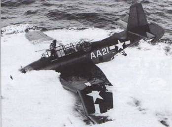 TBF-1 (зав. № 00399) л-та Л. К. Файберлинга эскадрильи VT-8. Самолет был сбит 4 июня 1942 г. в ходе битвы под Мидуэем