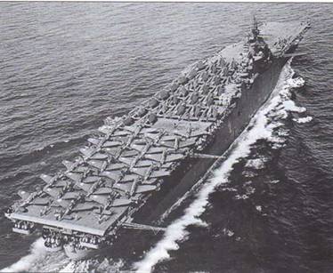 Первой авианосцы применила Япония в войне против Китая. К декабрю 1941 г. она имела 9 таких кораблей, на которых было развернуто 474 самолета. Военно-морские силы США располагали восемью авианосцами, включая 7 больших. Официальная морская доктрина по-прежнему провозглашала главенство линкоров, но большинство старших командиров делало ставку на авианосцы. Американские авианосцы были мощнее японских. На них можно было развернуть 633 самолета, самый вместительный Wasp (CV-7) мог принять их до 100 штук, а японский рекордсмен «Сёкаку» – только 74. Три авианосца типа Yorktown вошли а строй в 1937,1938 и 1941 гг. Они брали по 90 самолетов, отличались большей скоростью и запасом хода, были более живучими и при полном водоизмещении 25500 т имели палубу 230x33,4 м. Формально в ВМС США эскадрильи закреплялись за авианосцами и номеровались по кораблю (например, VT-2 – эскадрилья бомбардировщиков-торпедоносцев с авианосца CV-2 Lexington). Наделе четкости не было, и готовая к выходу в море группировка могла включать другие подразделения и насчитывать меньше самолетов.