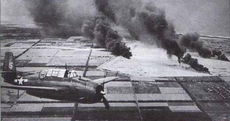 Самолеты эскадрильи VT-17 с авианосца «Банкер Хилл» разгромили очередной аэродром японцев.Тихий океан, ориентировочно 1944 г.